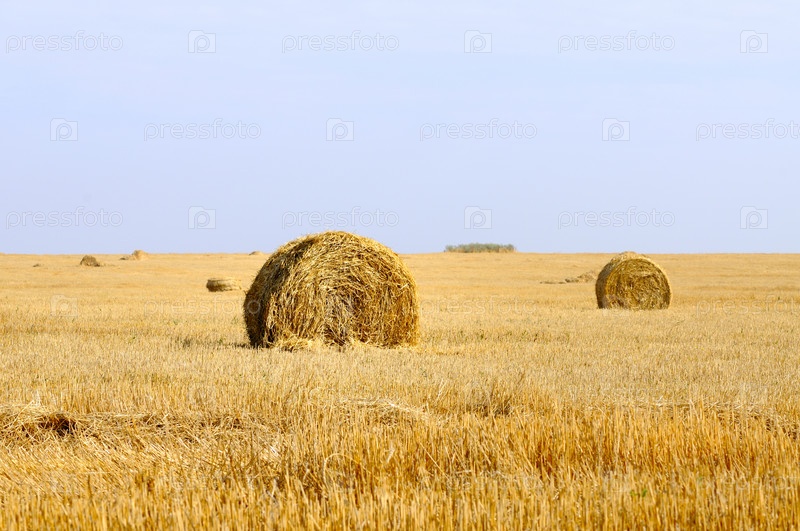 Сельский пейзаж с рулонами соломы