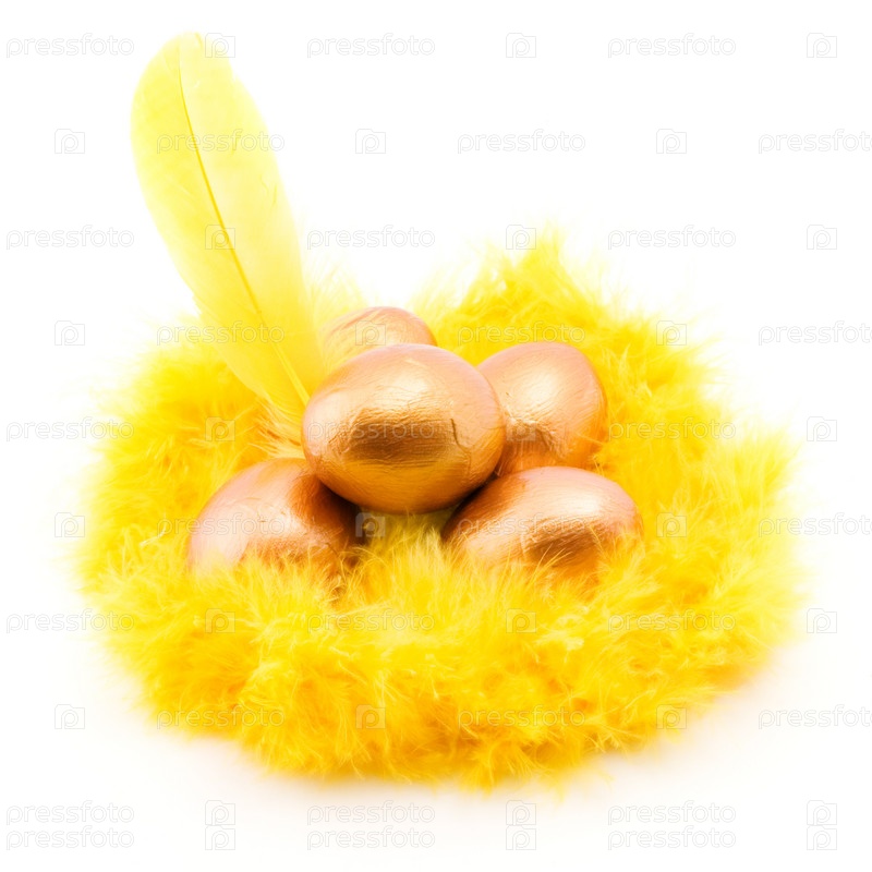 Пасхальная декоративная композиция с золотыми яйцами
