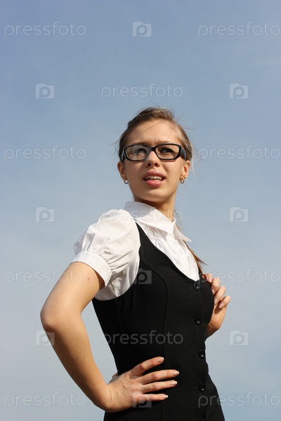 Девушка в очках на фоне неба