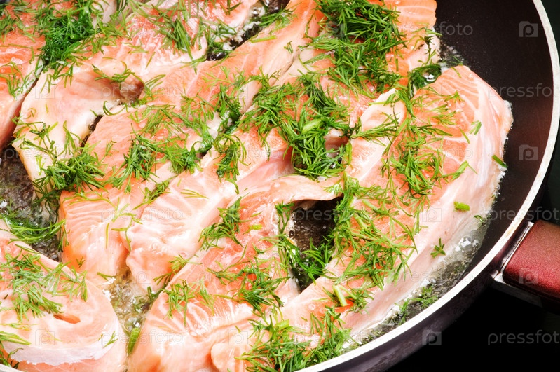 Жареная форель с укропом в сковороде