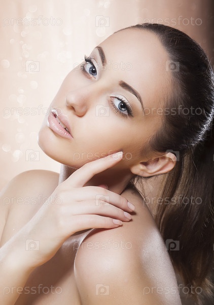 Портрет здоровой женщины с золотым макияжем. Концепция спа