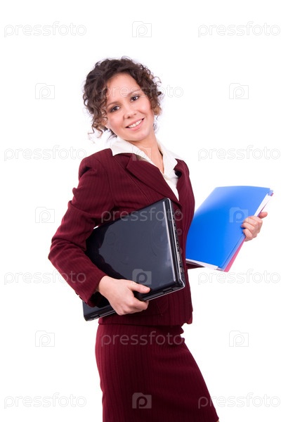 Женщина с ноутбуком и папками в руках