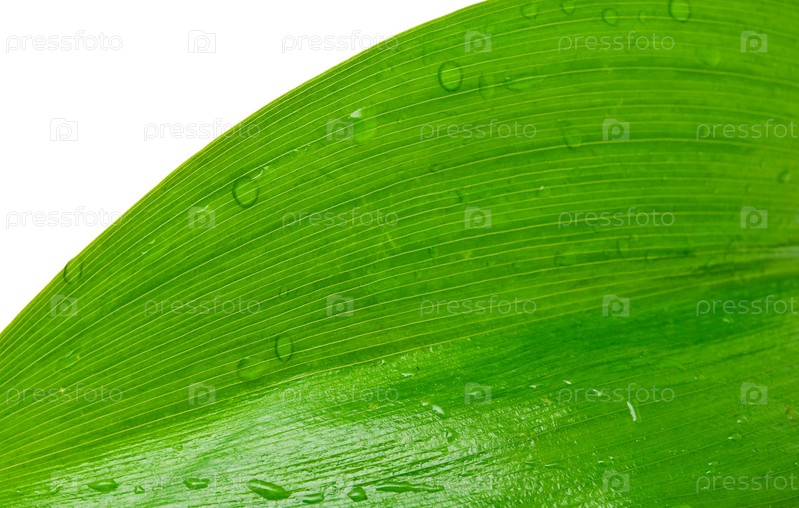 Лист с каплями росы на белом фоне