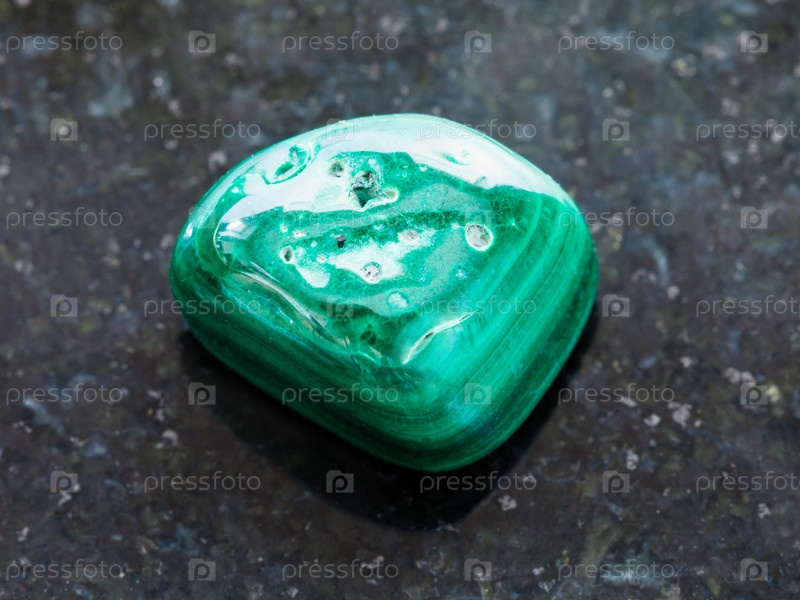 Полированный малахит камень на темном