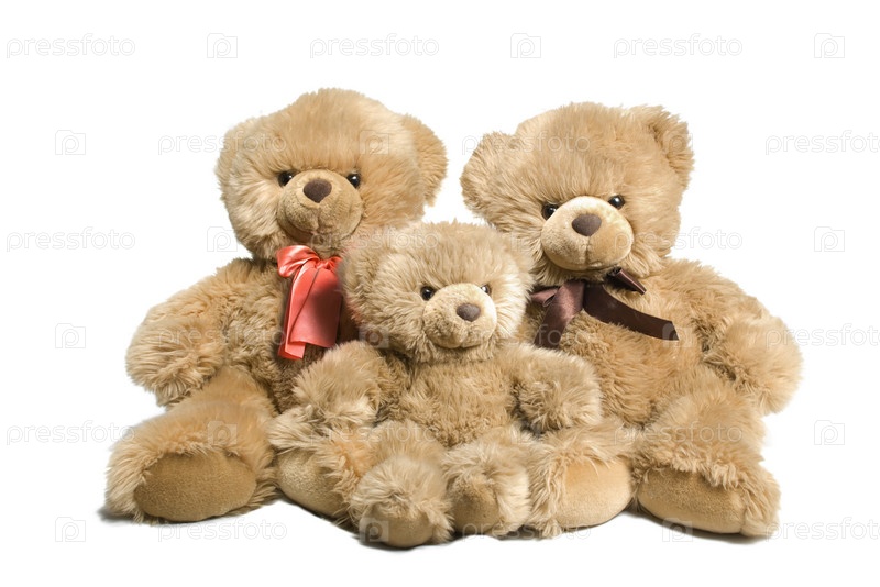 Семья из трех медведей на белом фоне