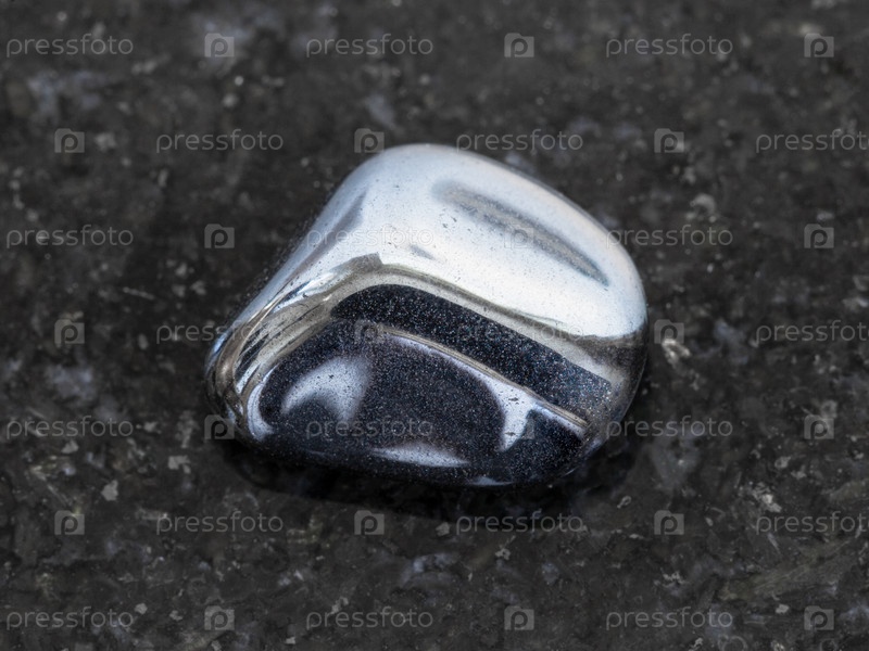 Полированный гематит камень на темном фоне