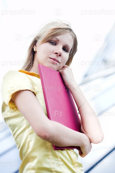 Блондинка с розовой папкой
