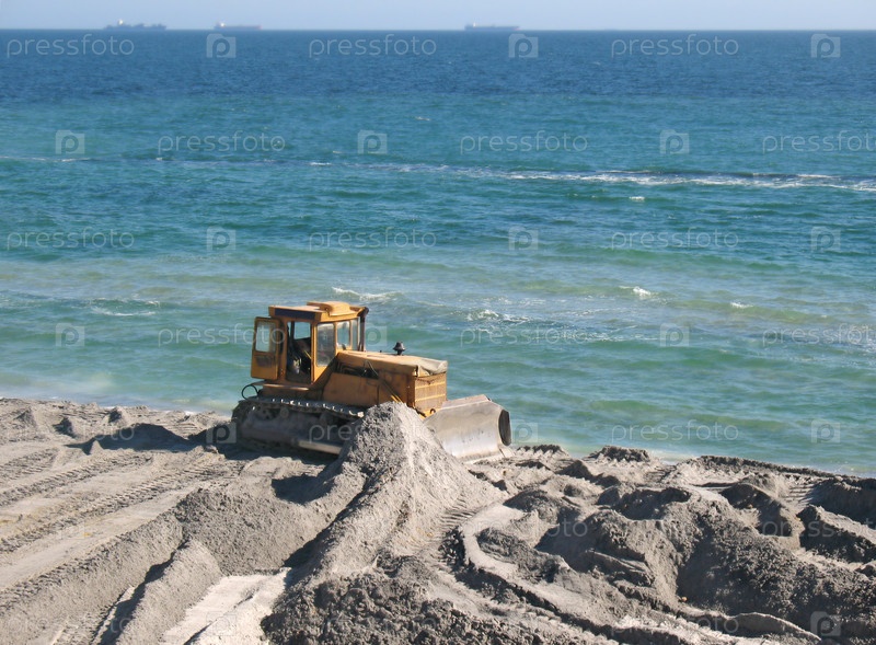 Бульдозер в работе на пляже