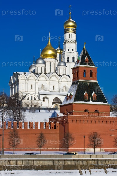 Кремлевская стена и собор Архангела Михаила в Москве, Россия