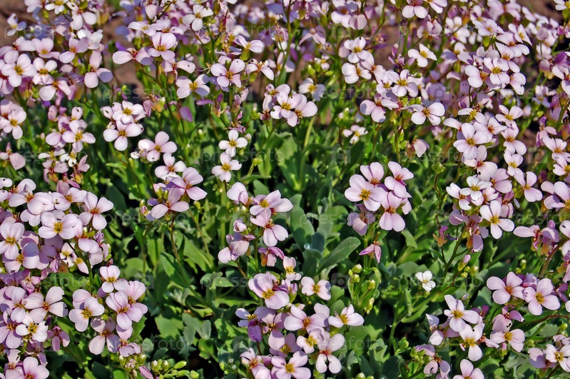 Мелкие розовые весенние цветы на фоне зеленых листьев
