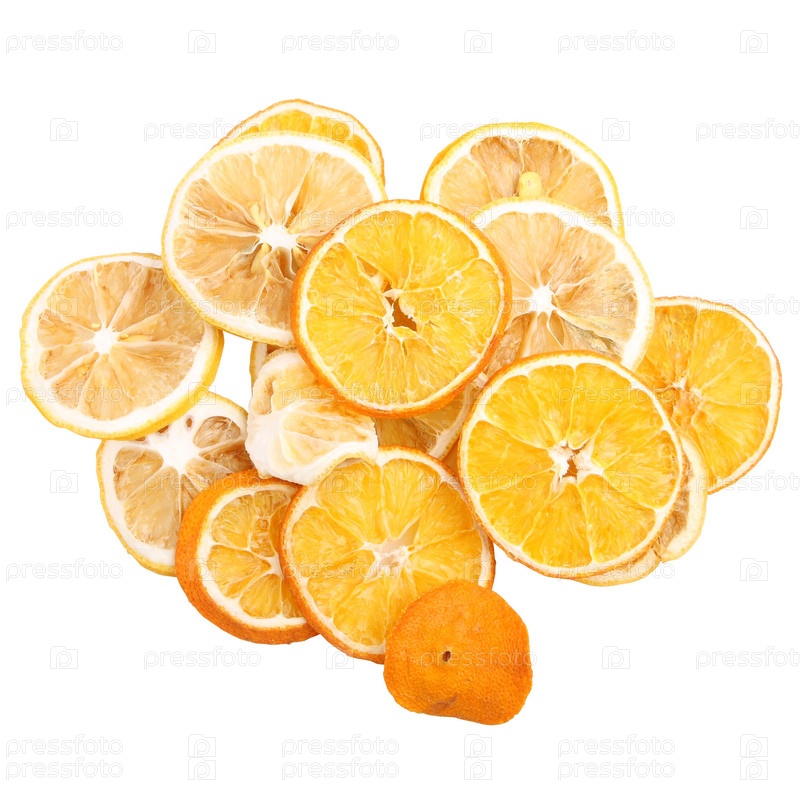 Сушеные дольки апельсина на белом фоне