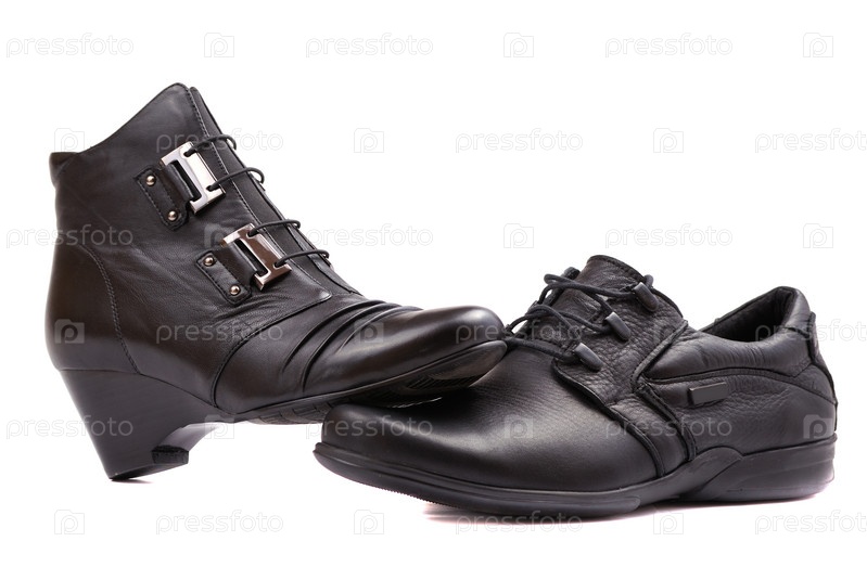 Мужской и женский ботинок на белом фоне
