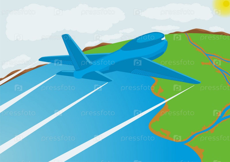Самолет летит над морем