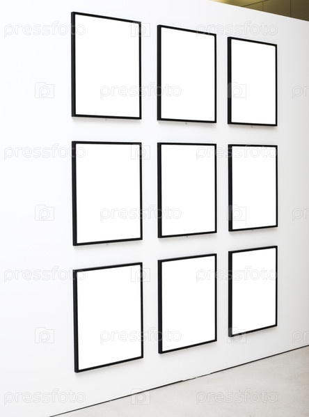 Девять пустых рамок на выставке белой стены в Музее