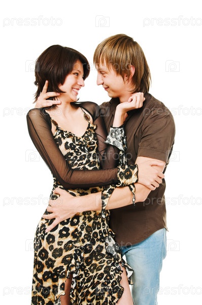 Молодая влюбленная пара на белом фоне