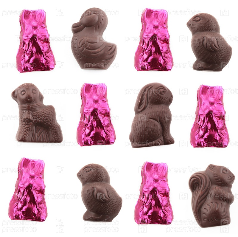 Шоколадные конфеты на белом фоне