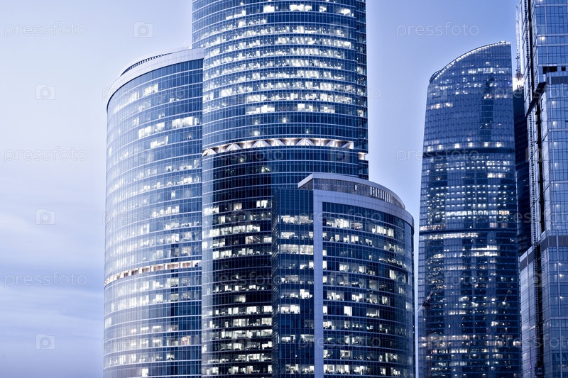 Новый бизнес-центр небоскребов вечером