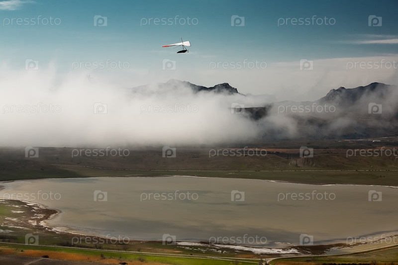 Вид на Карадаг с дельтапланом
