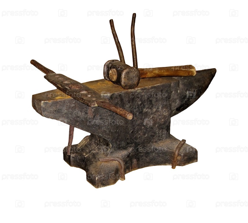 Старинная наковальня с инструментами