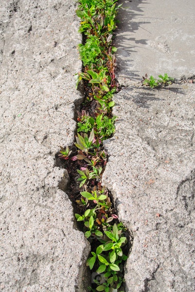 Трава, растущая в трещине бетонной плиты