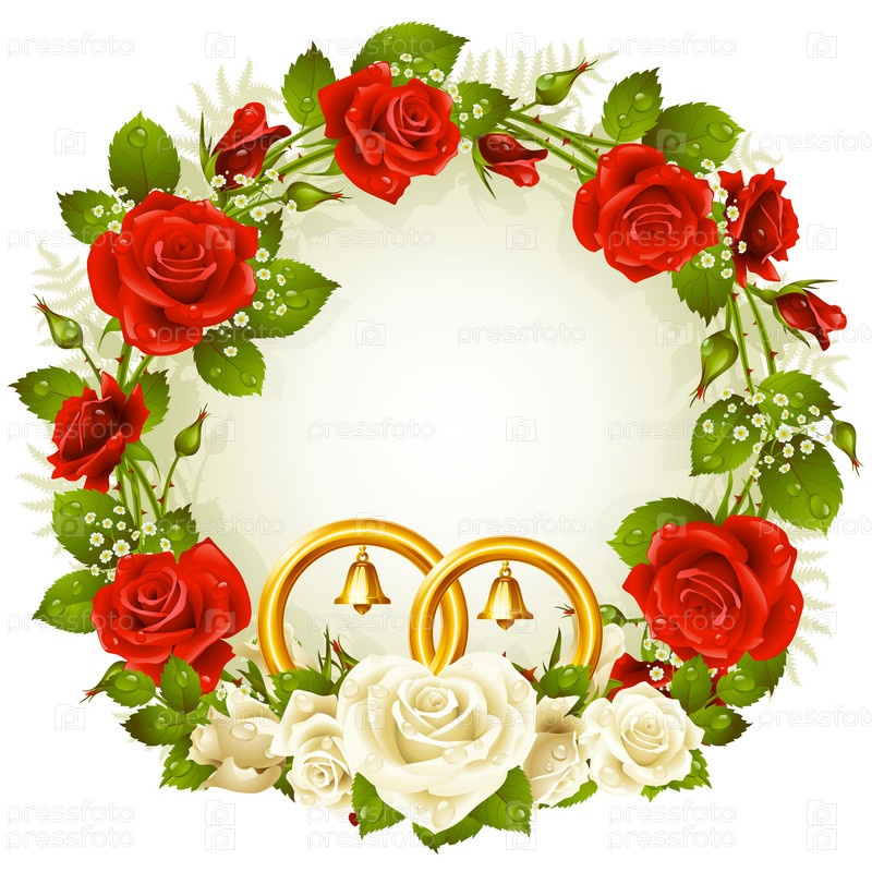 Белые и красные розы, свадебная рамка