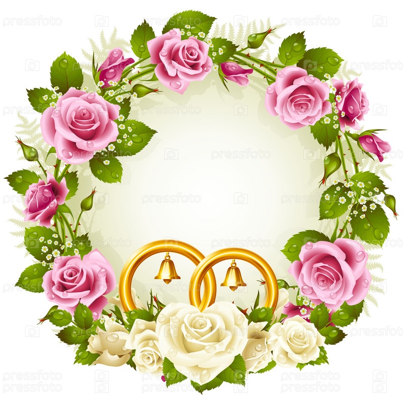 Белые и розовые розы, свадебная рамка