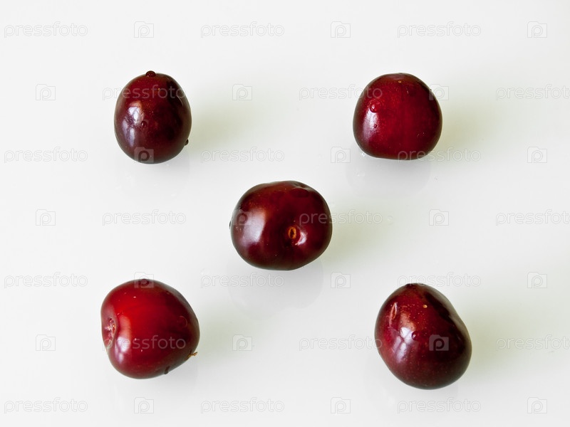 Пять вишен на белом фоне