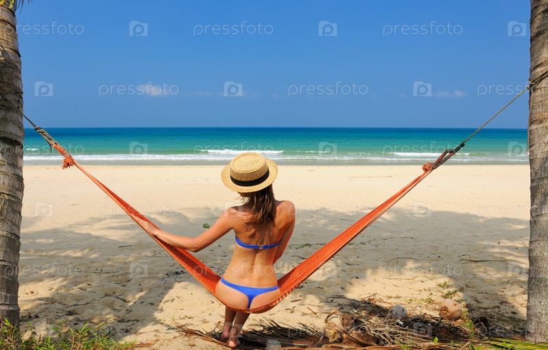 Женщина в гамаке на пляже