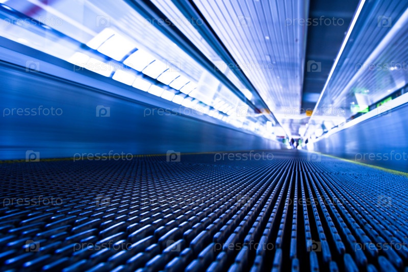 Камера расположена на эскалаторе в синем коридоре торгового центра