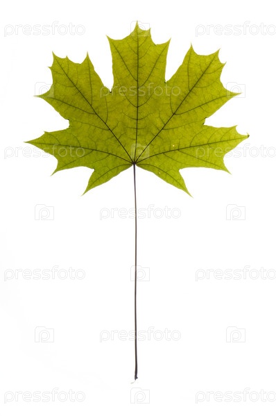 Зеленый кленовый лист на белом