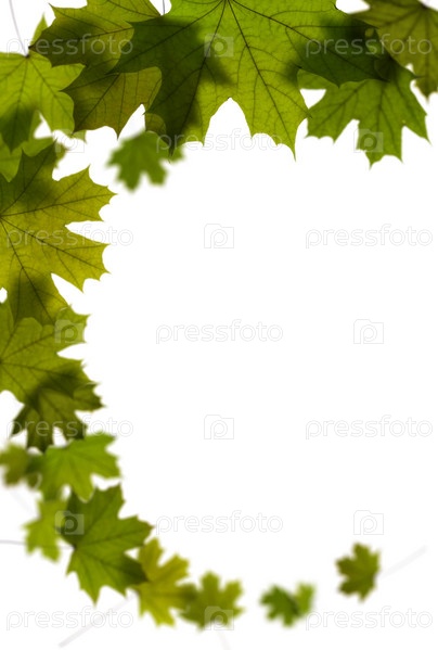 Зеленые кленовые листья на белом