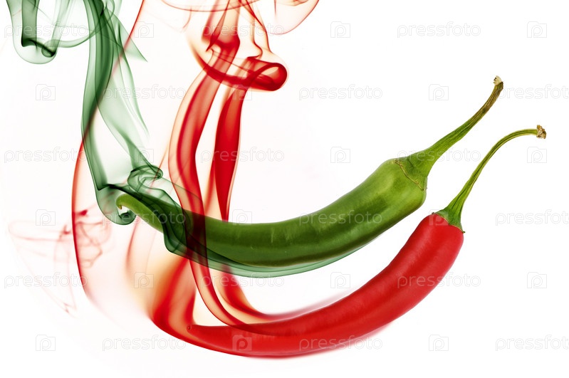 Красный и зеленый острый перец чили и дым