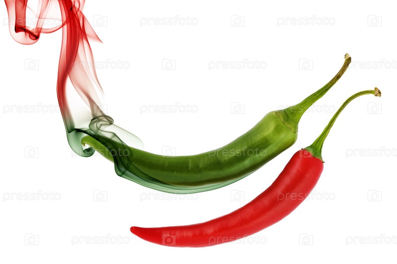 Красный и зеленый острый перец чили и дым