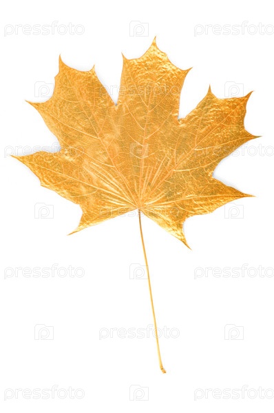 Золотой кленовый лист на белом