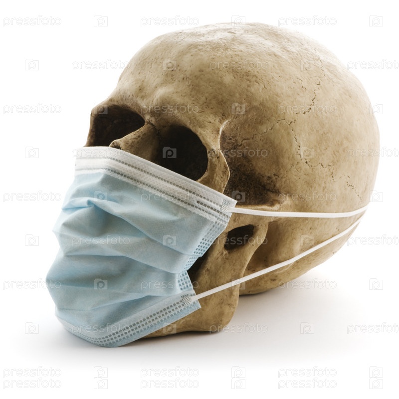 Череп в защитной медицинской маске на белом фоне