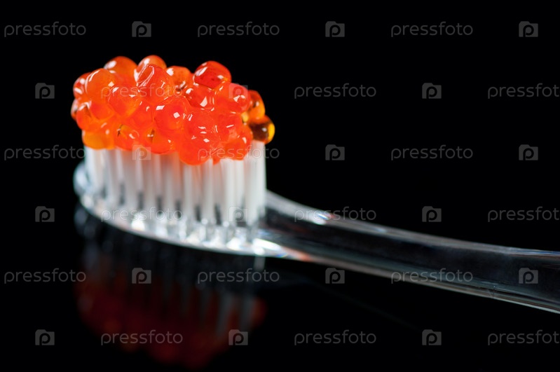 Красная икра на зубной щетке вместо зубной пасты