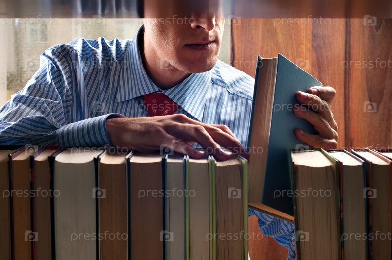 Мужчина с книгой у книжной полки