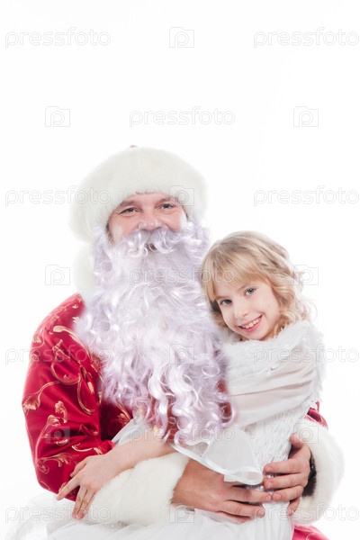 Дед Мороз дарит подарки маленькой хорошенькой девочке