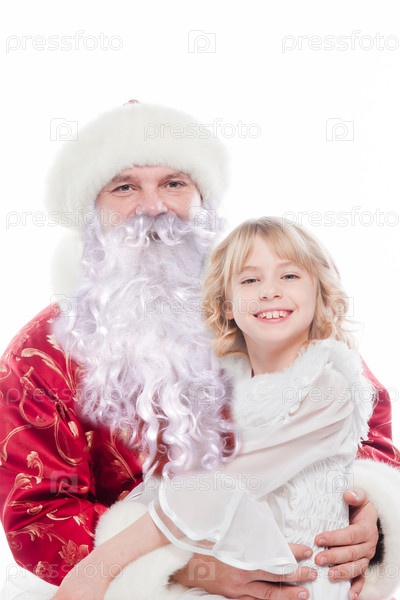 Дед Мороз дарит подарки маленькой хорошенькой девочке