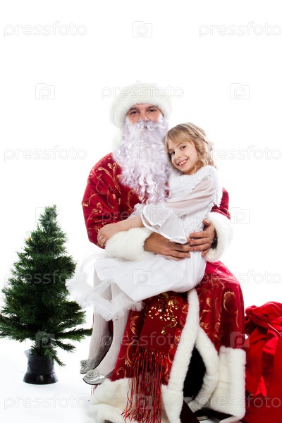 Дед Мороз дарит подарки маленькой хорошенькой девочке