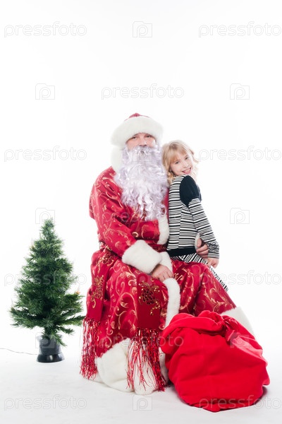 Дед Мороз дарит подарки маленькой хорошенькой девочке