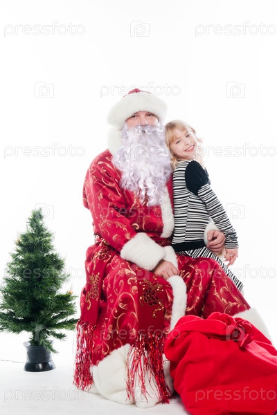 Дед Мороз дарит подарки маленькой хорошенькой девочке