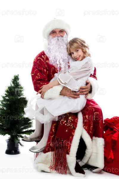 Дед Мороз дарит подарки маленькой хорошенькой девочке