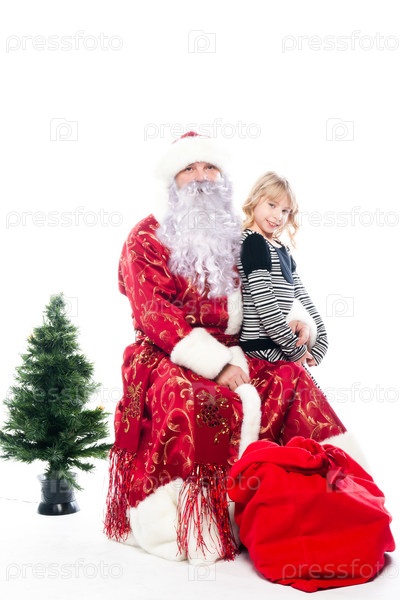 Дед Мороз дарит подарки маленькой хорошенькой девочке
