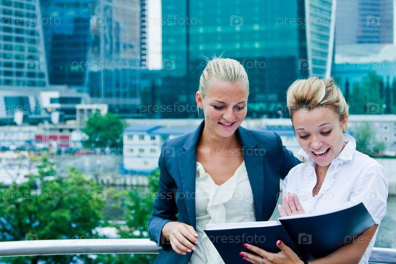 Две молодые деловые женщины обсуждают бизнес-проект
