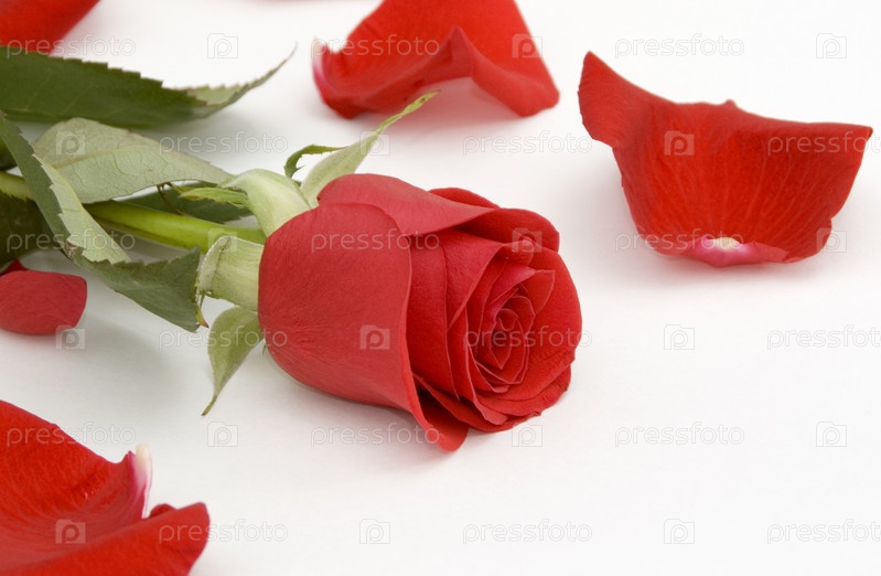 Красивая красная роза в окружении лепестков
