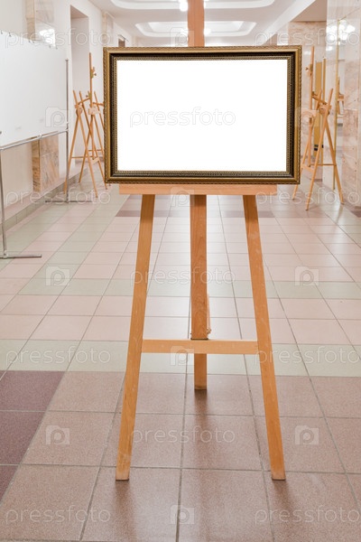 Деревянная рамка на мольберте в художественной галерее