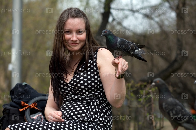Девушка с голубем на руке