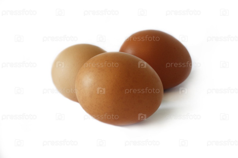 Три яйца на белом фоне