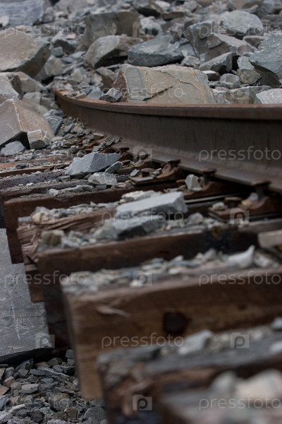 Ржавые железнодорожные рельсы в камнях